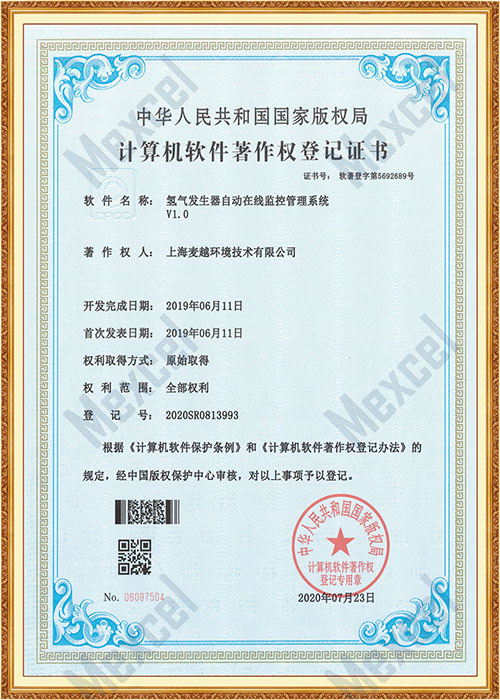 氫氣發(fā)生器在線監(jiān)控管理系統(tǒng)著作權(quán)證書 -