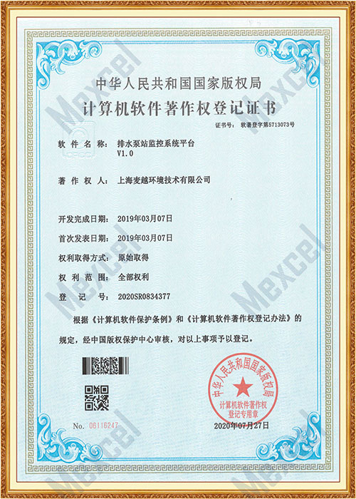 排水泵站監(jiān)控系統(tǒng)平臺著作權(quán)證書